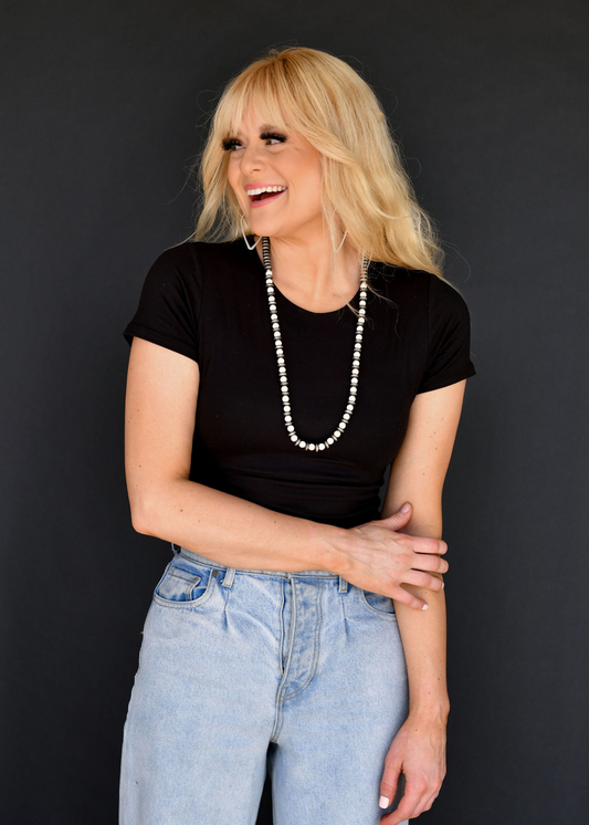 36" Faux Navajo Pearl and Black Disc Necklace