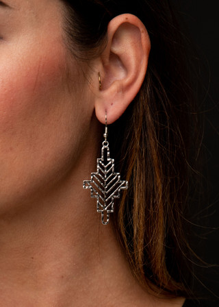 Burnished Silver Geometric Cross Earring