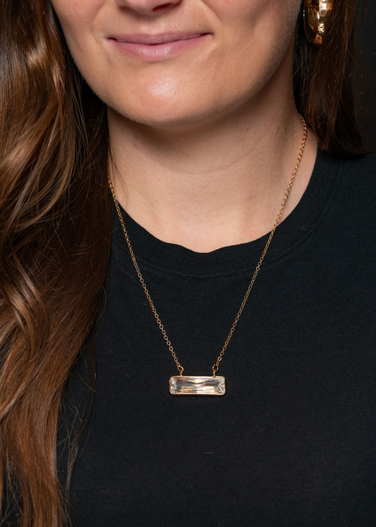 Dainty Gold Necklace w/ Rhinestone Bar