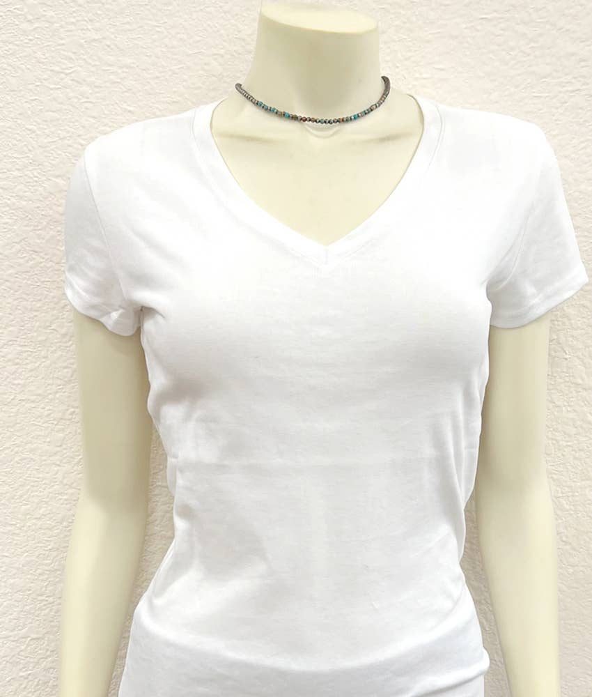 This handmade 4mm gemstone and Navajo pearl necklace is the perfect lightweight layering piece for everyday western style. Featuring alternating tiny 4mm natural gemstones and 4mm Navajo beads, this necklace offers subtle texture, soft color variation, and timeless southwestern charm.